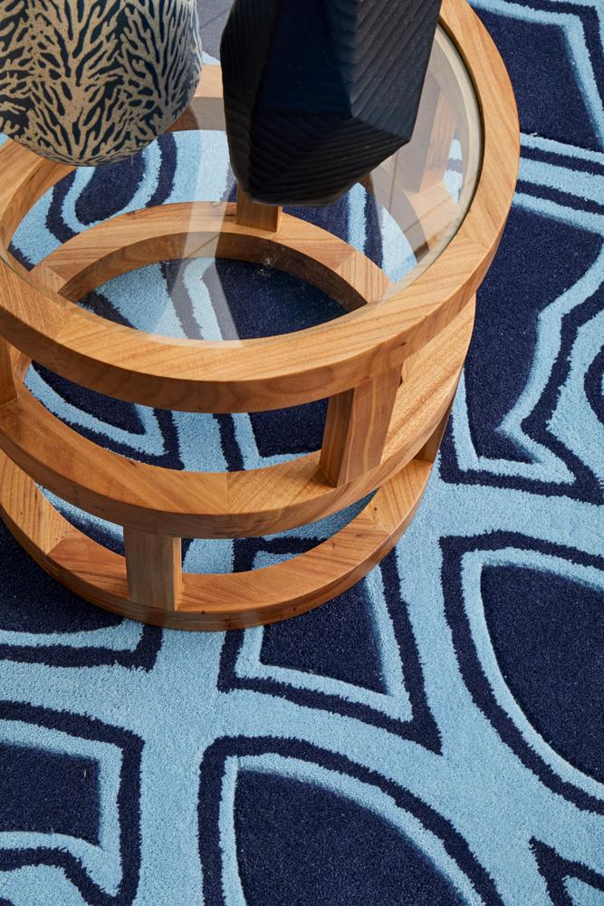 - Hand tufted and carved